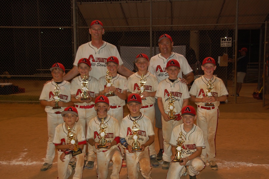 Congratulations to the AYBA Eagles 6U OOP All-Stars who ended their 2013 season in style by winning the Ocee Park Summer Slam Championship the weekend of June 28th-June 30th. The Eagles went 4-0 over the weekend, playing tremendous baseball and outscoring their opponents 75-35 enroute to the championship. The bats were hot, and the defense was outstanding!! The highlight of the tournament was in the semifinals as the Eagles hit back to back homeruns, followed later in the inning by a two run walk-off homerun. The Eagles kept the momentum and rolled to a dominating 22-7 victory in the finals.